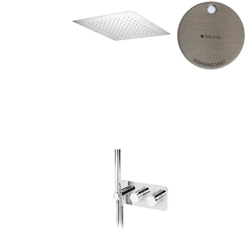 Bruma Avalon Bateria natryskowa termostatyczna podtynkowa z deszczownicą sufitową 500x500 mm i słuchawką prysznicową Morning Mist 1844872MM