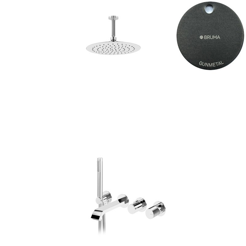 Bruma Avalon Bateria wannowo-natryskowa podtynkowa z deszczownicą sufitową Ø 250 mm i słuchawką prysznicową Gunmetal 1892506MG