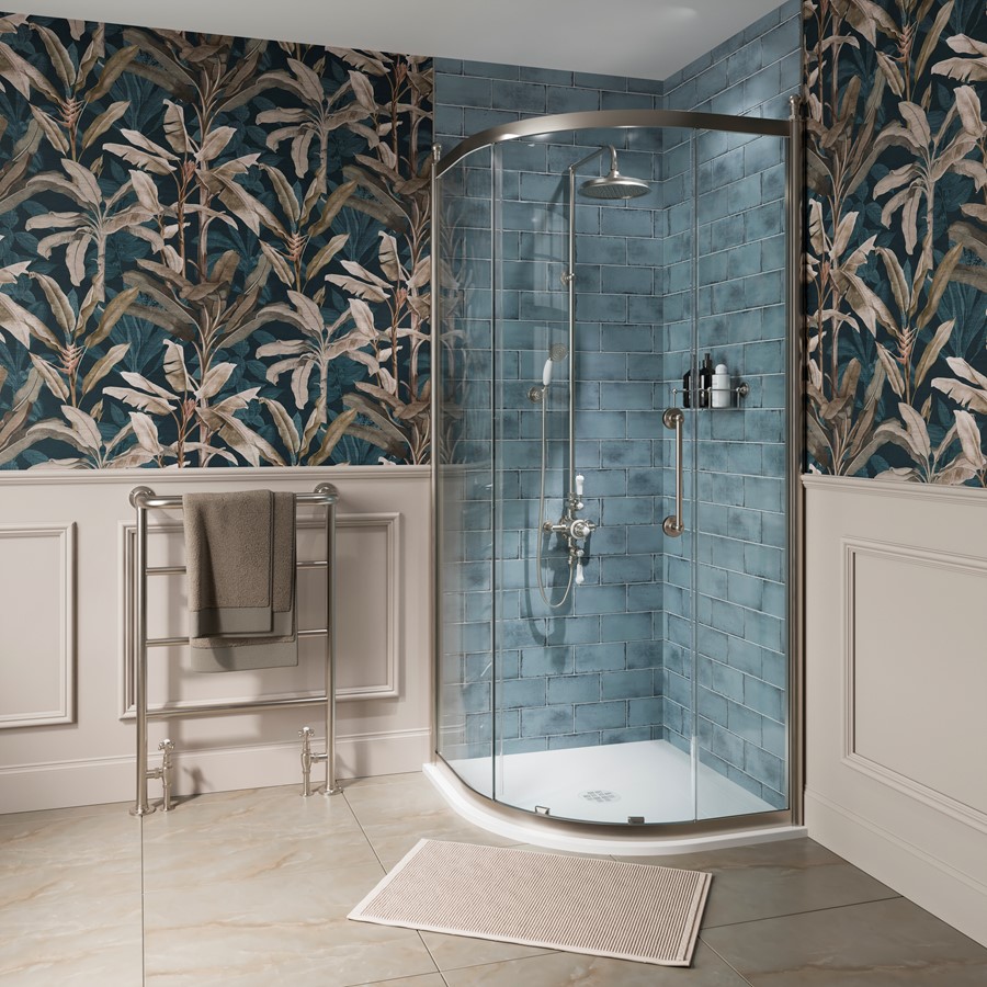 Burlington Classique Kabina prysznicowa półokrągła, drzwi suwane 90x90x200 brushed nickel CQQSLC0900