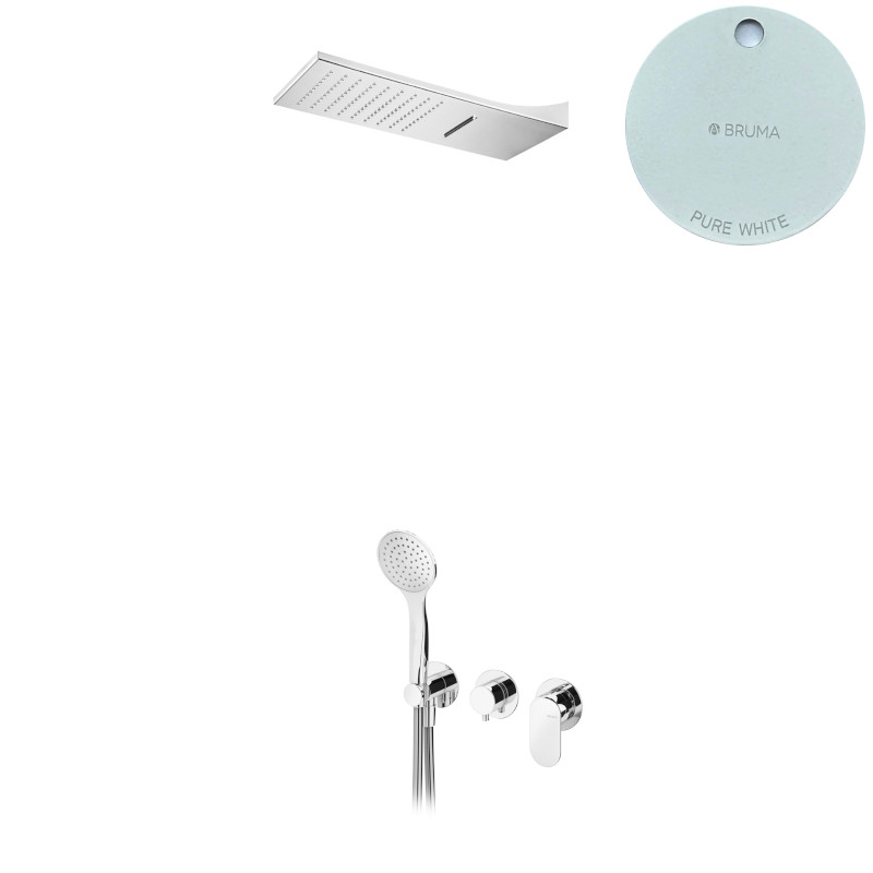 Bruma Spring Zestaw natryskowy z deszczownicą ścienną ze strumieniem kaskadowym i słuchawką prysznicową Pure White 1125751PW