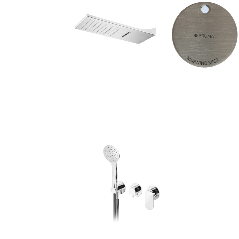 Bruma Spring Zestaw natryskowy z deszczownicą ścienną ze strumieniem kaskadowym i słuchawką prysznicową Morning Mist 1125751MM