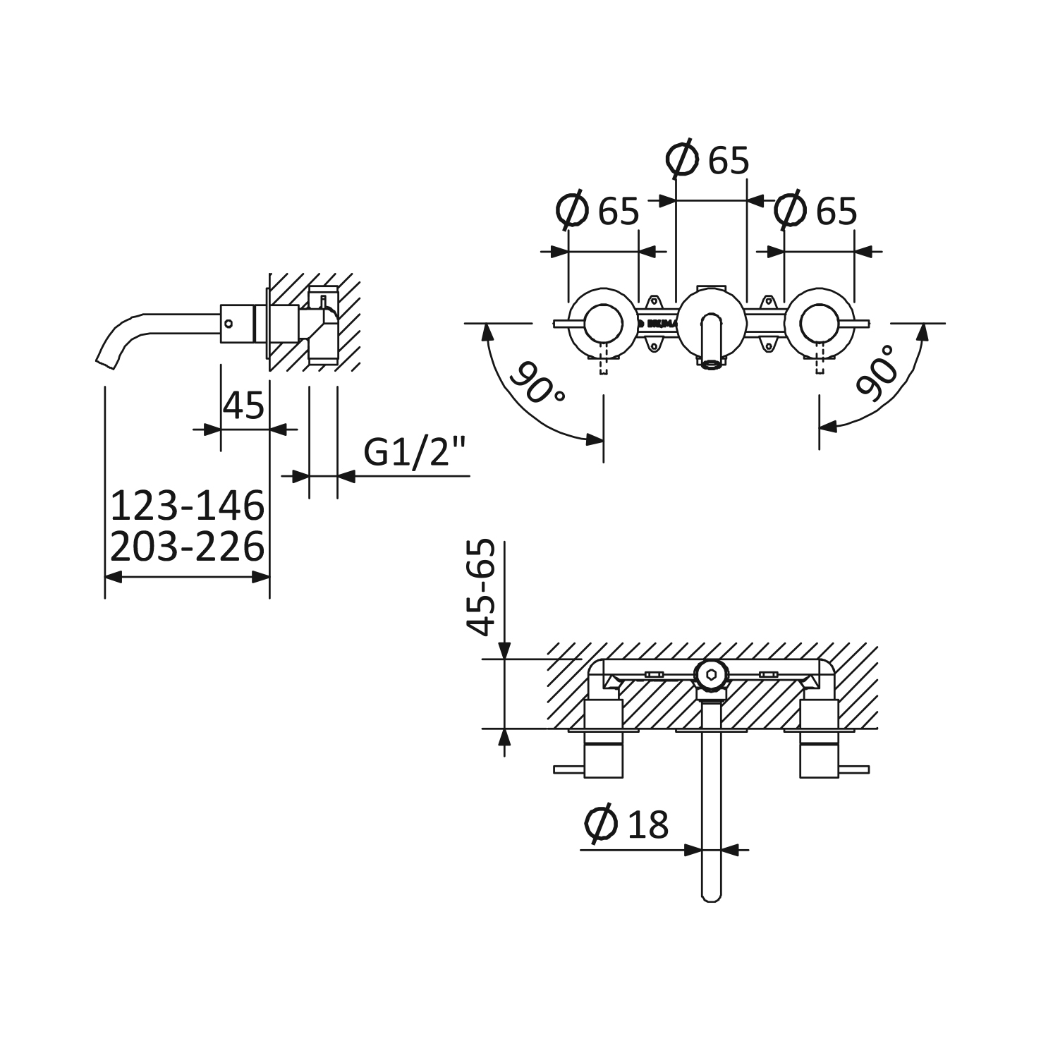 Głębokość montażu: 45 - 65 mm