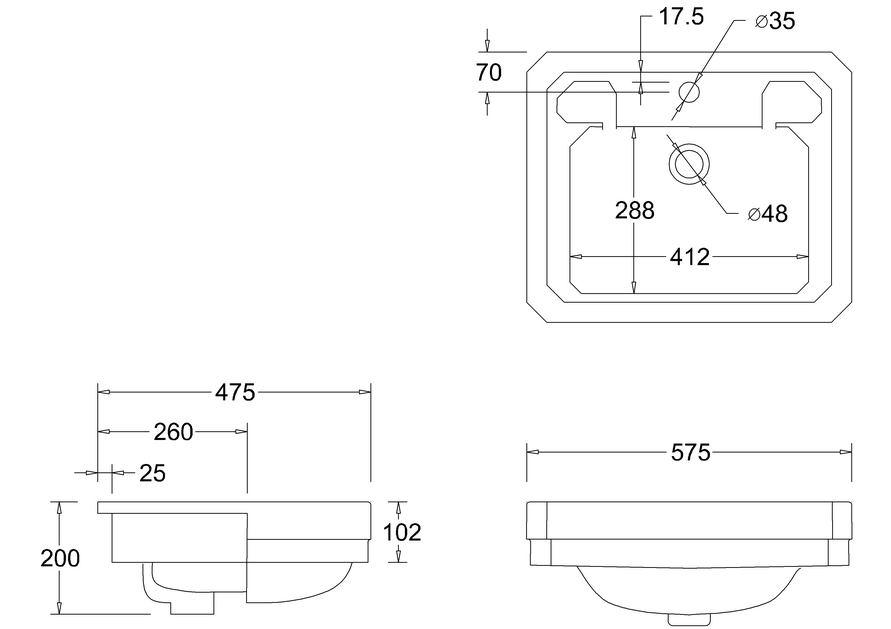 Burlington Umywalka półwpuszczana w blat 57,5x47,5 biała B122TH