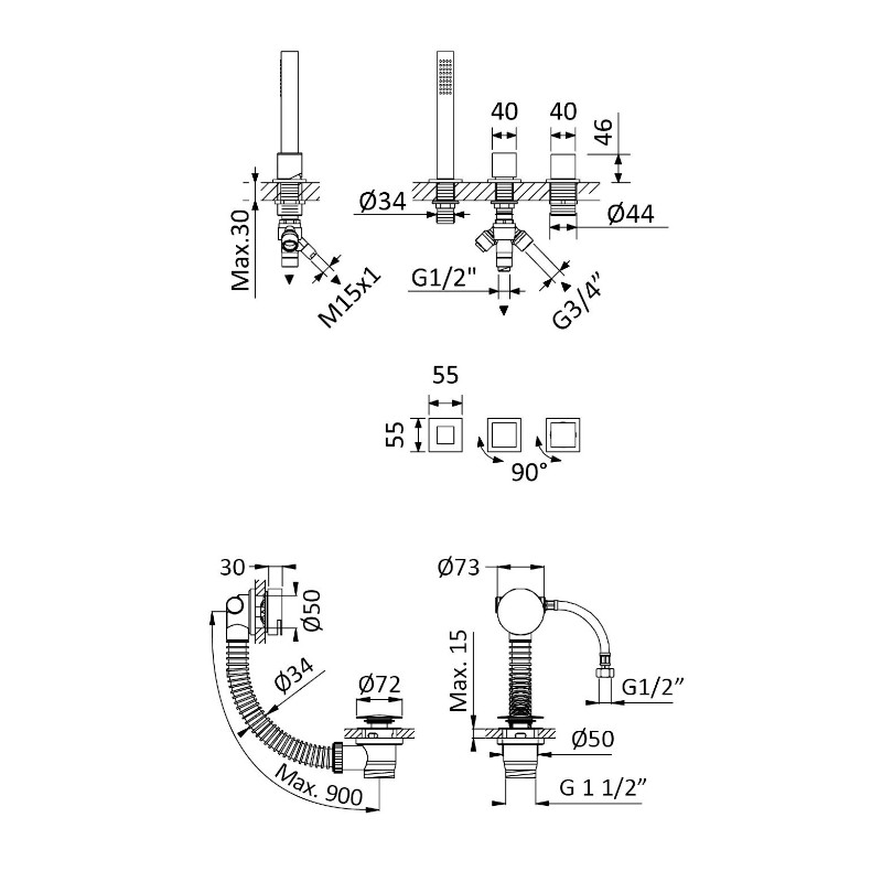 Bruma Escudo 2 Zestaw natryskowy 2-drożna na brzeg wanny z napełnianiem przez przelew Sunrise 1025211SR