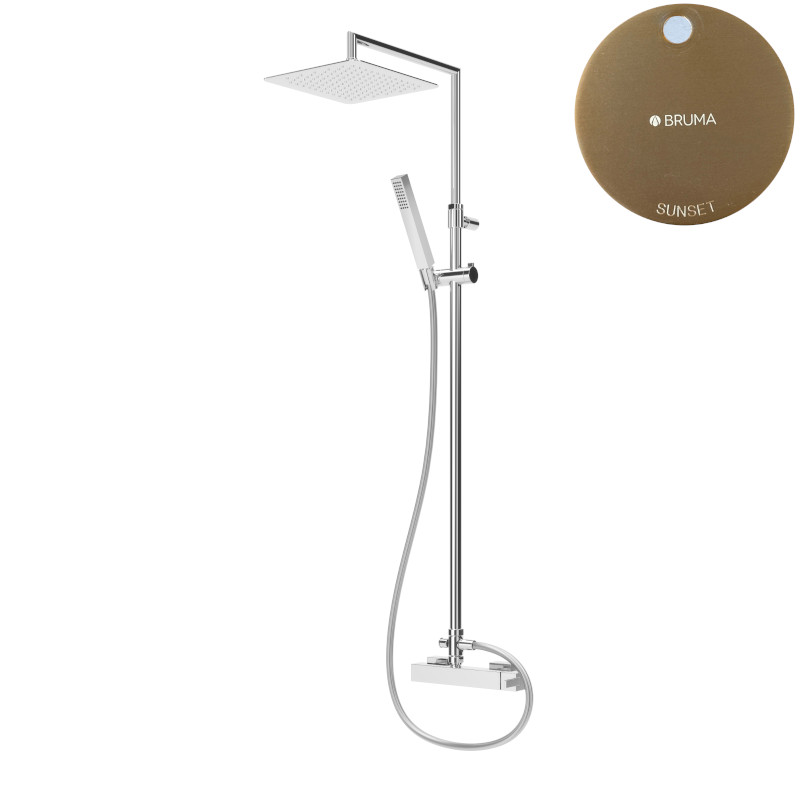 Bruma Escudo 2 Zestaw natryskowy naścienny z deszczownicą 200x200 mm na ruchomym ramieniu i słuchawką na uchwycie Sunset 1022781SS