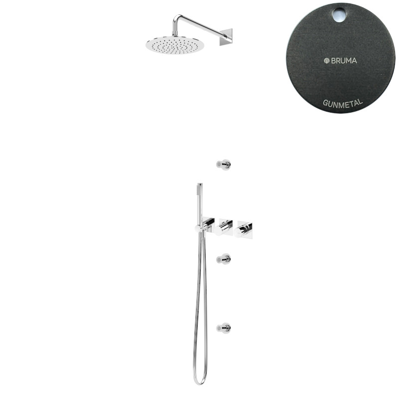 Bruma Lusa Zestaw natryskowy podtynkowa Ø 250 mm z 3 dyszami ściennymi i ze słuchawką Gunmetal 1017832MG