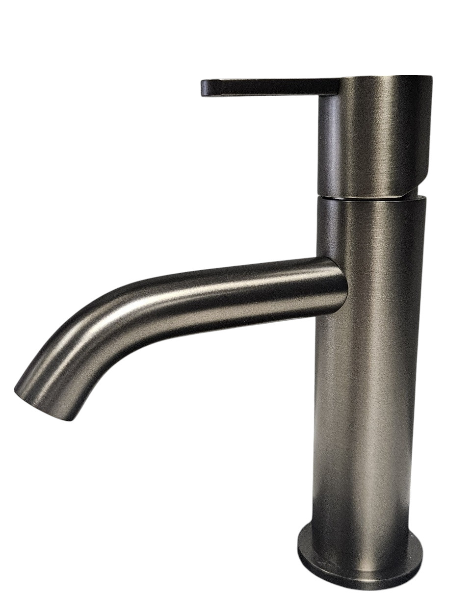 Nowoczesna i elegancka bateria umywalkowa Bruma Leaf w wykończeniu Gunmetal PVD to idealny wybór do designerskich łazienek. Model jednootworowy, bez korka, łączy minimalistyczne wzornictwo z wysoką jakością wykonania i trwałością.