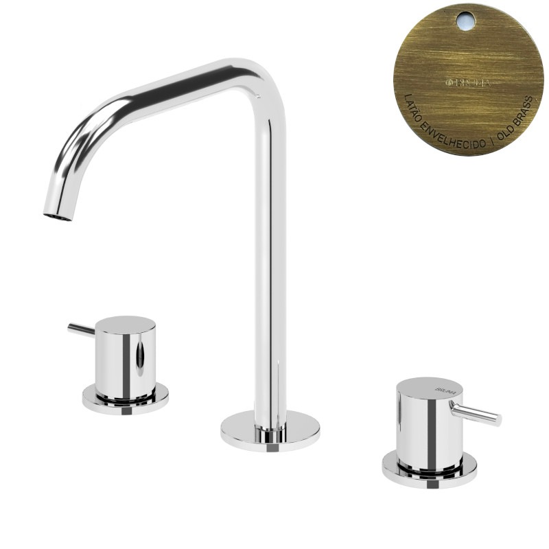 Bruma Leaf2 Bateria umywalkowa 3-otworowa bez korka, montowana na blacie Old Brass / Vieux Laiton 1670029LE