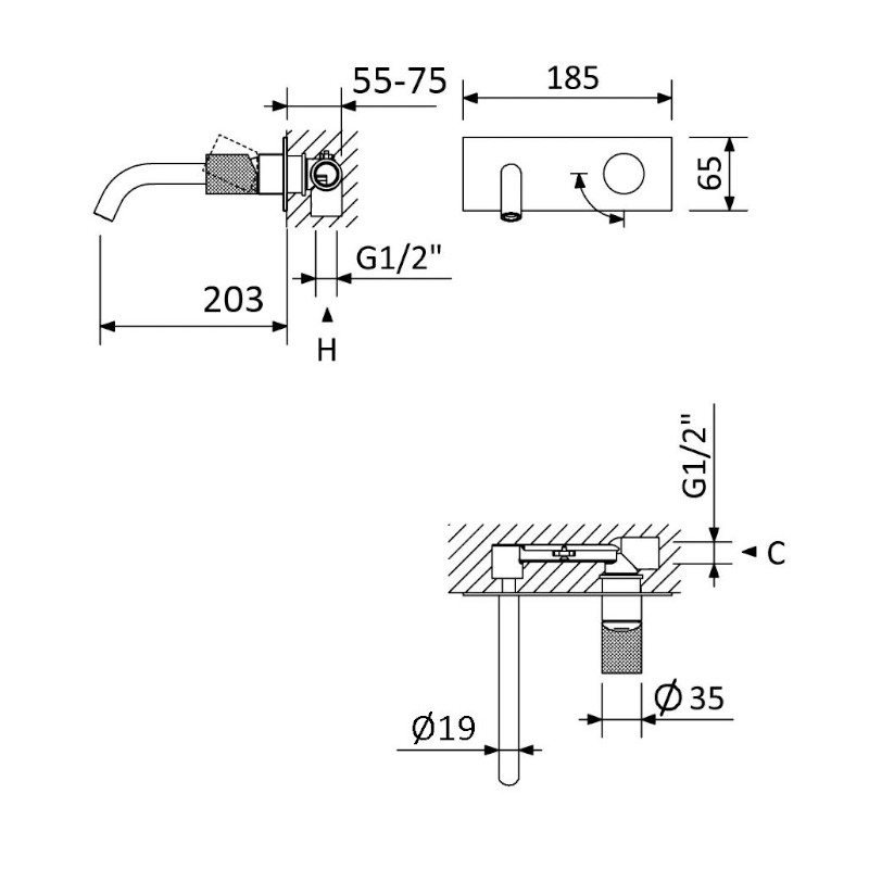 Bruma Leaf3 Bateria umywalkowa podtynkowa 200 mm Sunset PVD 1670132PS