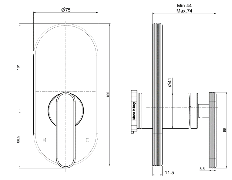 Carlo Frattini Park Line Bateria wannowa/prysznicowa podtynkowa element zewnętrzny chrom F1309E1CR