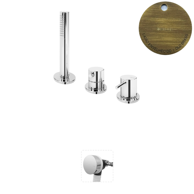 Bruma Leaf2 Bateria wannowo-natryskowa stojąca z wylewką w przelewie Old Brass / Vieux Laiton 1675212LE