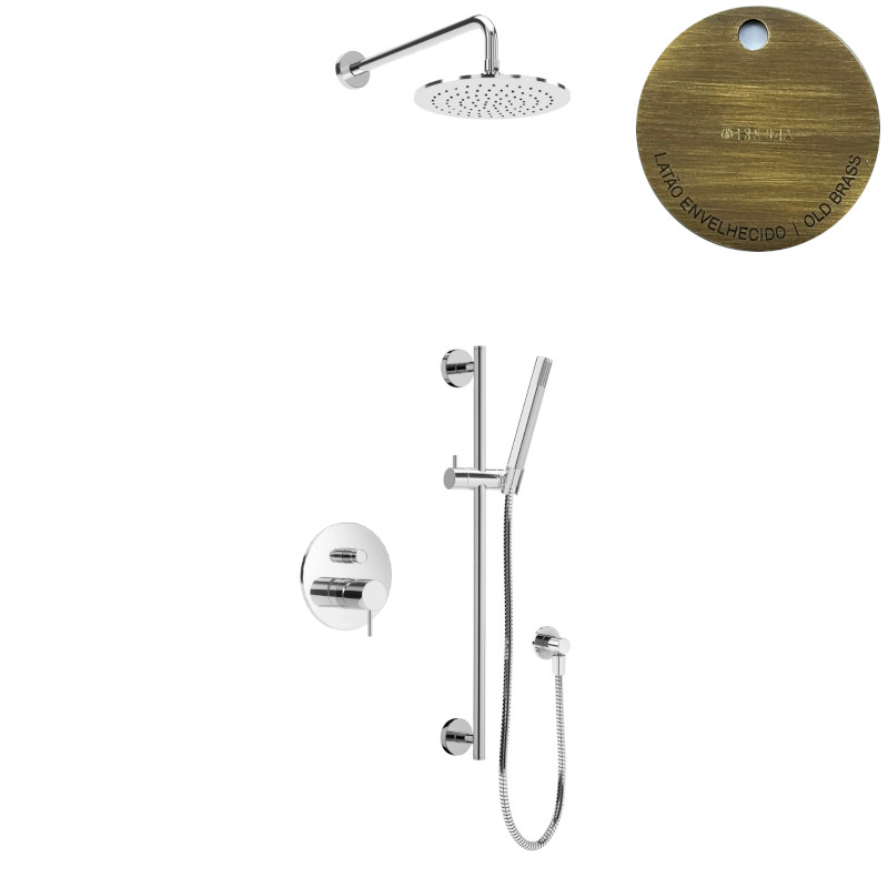 Bruma Leaf2 Zestaw natryskowa podtynkowy z deszczownicą Ø 250 mm i słuchawką na drążku Old Brass / Vieux Laiton 1673742LE