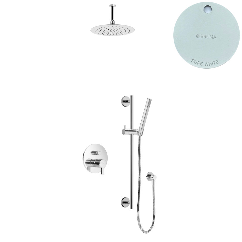 Bruma Leaf Zestaw natryskowa podtynkowy z deszczownicą sufitową Ø 230 mm i słuchawką na drążku Pure White 1673743PW