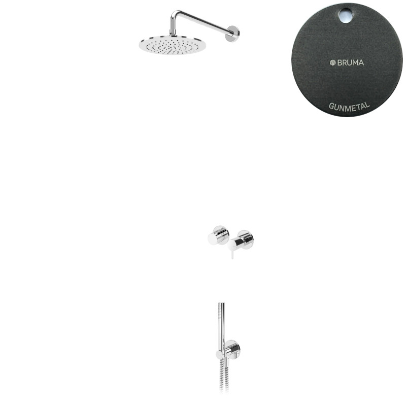 Bruma Leaf2 Zestaw prysznicowy podtynkowy z deszczownicą ścienną Ø 250 mm ze słuchawką Gunmetal 1673605MG