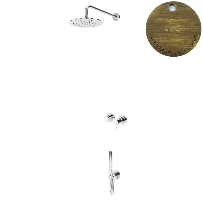 Bruma Leaf2 Zestaw prysznicowy podtynkowy z deszczownicą ścienną Ø 250 mm ze słuchawką Old Brass / Vieux Laiton 1673605LE