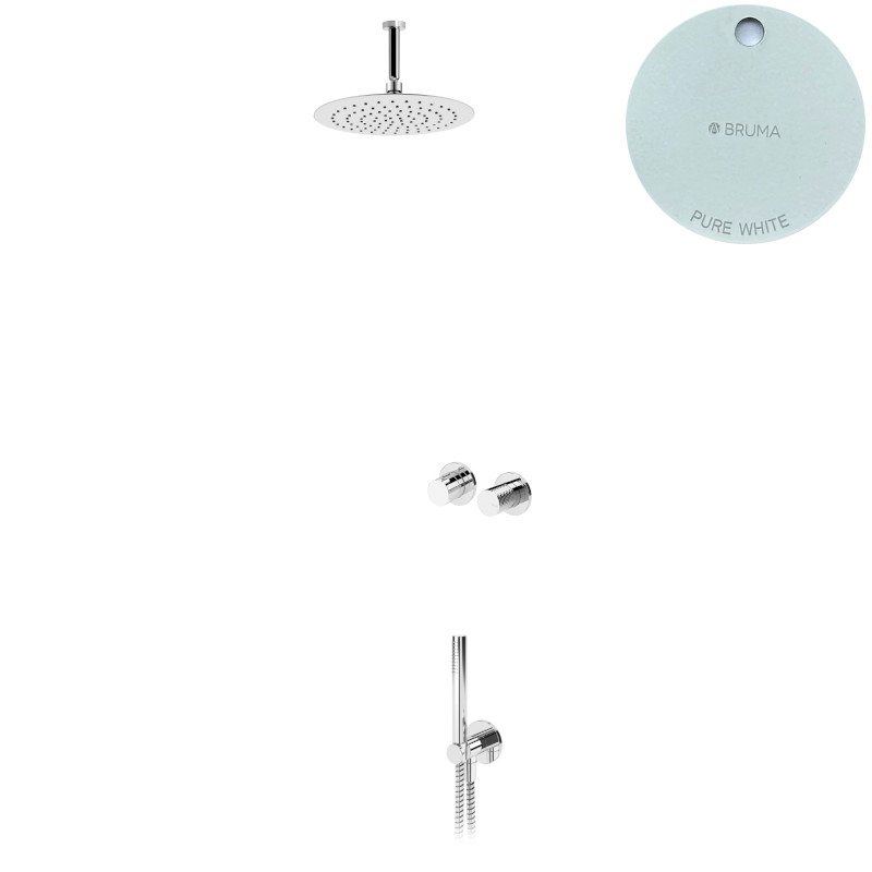 Bruma Leaf4 Zestaw prysznicowy podtynkowy z deszczownicą sufitową Ø 300 mm ze słuchawką Pure White 1673712PW