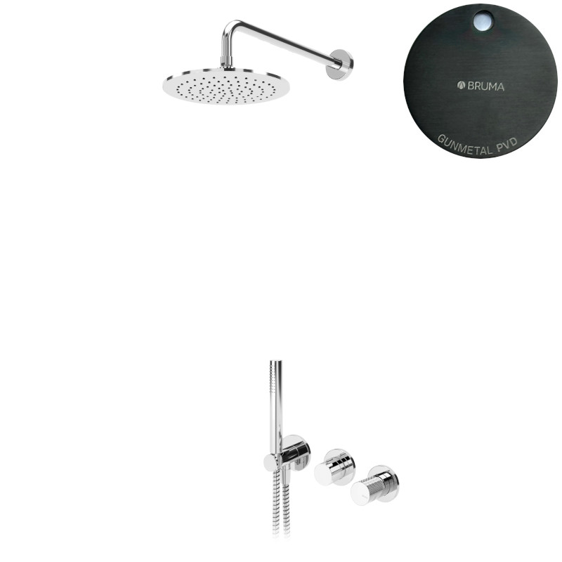 Bruma Leaf3 Bateria natryskowa podtynkowy z deszczownicą Ø 250 mm i zestawem natryskowym Gunmetal PVD 1673617GM
