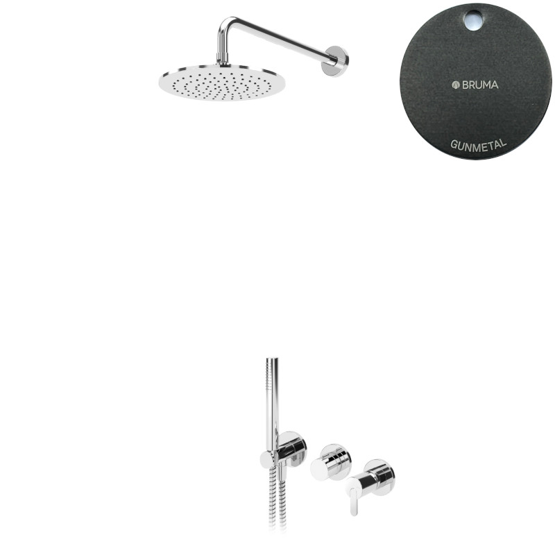Bruma Leaf Bateria natryskowa podtynkowy z deszczownicą Ø 300 mm i zestawem natryskowym Gunmetal 1673619MG