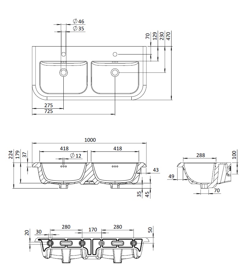 Burlington Umywalka 100x47 biały połysk CH01001SCW