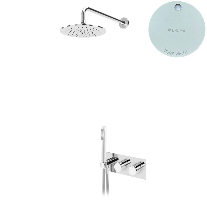 Bruma Leaf Zestaw natryskowy podtynkowy termostatyczny z deszczownicą Ø 250 mm z ramieniem ściennym Pure White 1875931PW
