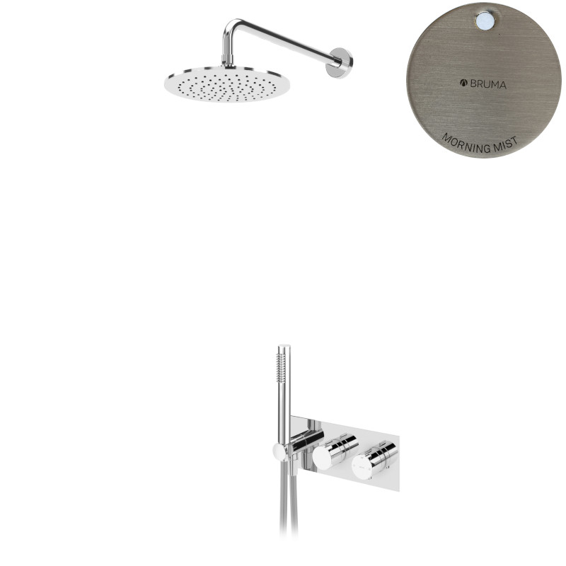 Bruma Leaf Zestaw natryskowy podtynkowy termostatyczny z deszczownicą Ø 250 mm z ramieniem ściennym Morning Mist 1875931MM