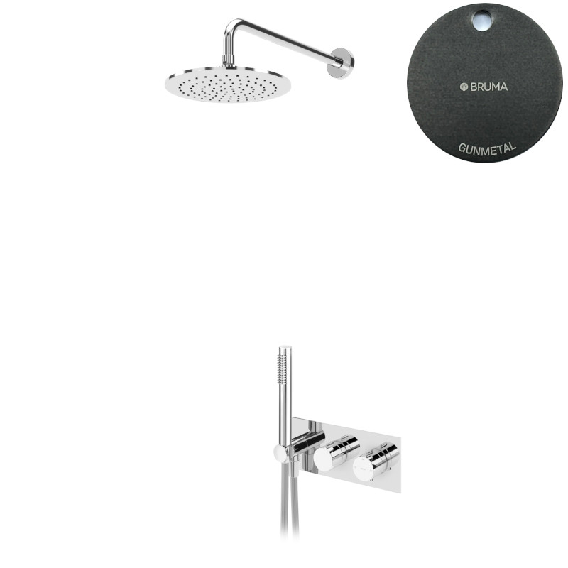 Bruma Leaf Zestaw natryskowy podtynkowy termostatyczny z deszczownicą Ø 250 mm z ramieniem ściennym Gunmetal 1875931MG
