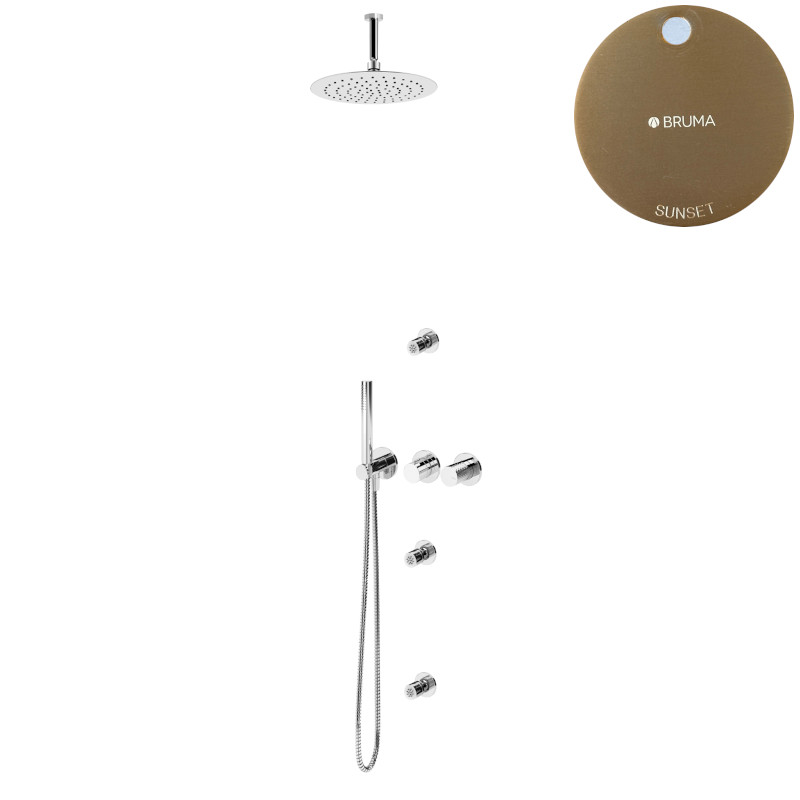 Bruma Leaf4 Zestaw prysznicowy podtynkowy z deszczownicą Ø 250 mm i 3 dysze podtynkowe Sunset 1673736SS