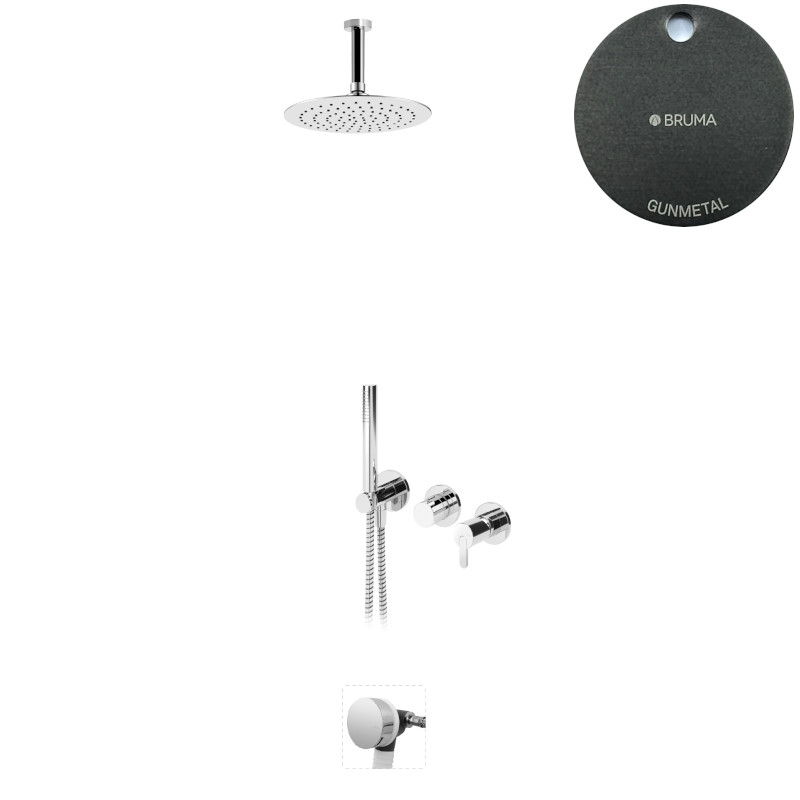 Bruma Leaf Bateria wannowo-natryskowa podtynkowy z deszczownicą Ø 250 mm i wylewką w odpływie Gunmetal 1673737MG