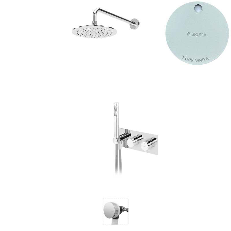 Bruma Leaf Bateria termostatyczna wannowo-natryskowa podtynkowy z deszczownicą Ø 250 mm i wylewką w odpływie Pure White 1874131PW