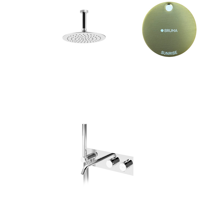 Bruma Leaf Bateria termostatyczna wannowo-natryskowa podtynkowy z deszczownicą sufitową Ø 250 mm z wylewką Sunrise 1873931SR