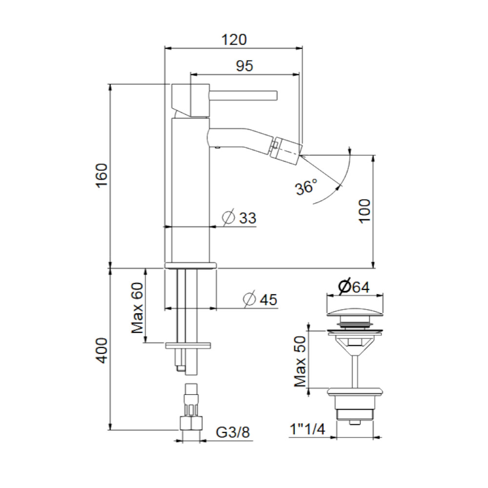 Webert Elio Slim Bateria bidetowa 1-otworowa z korkiem klik klak Chrom EP840101.015