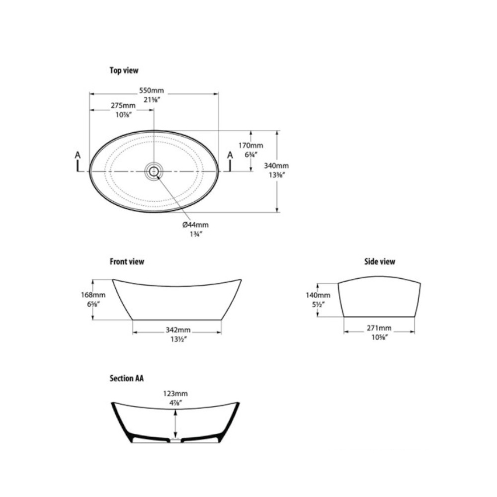 Victoria+Albert Amalfi 55 Umywalka nablatowa 55x34 cm Biała mat VB-AML55M-SM-NO
