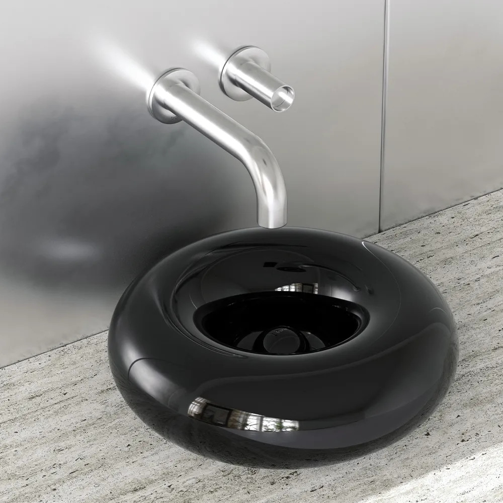 Trone Orbe Umywalka okrągła Ø 44 cm z korkiem Black ORBEBL