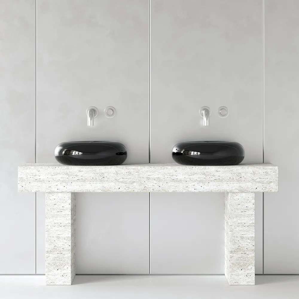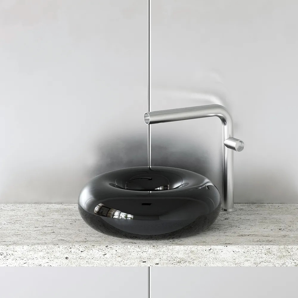 Organiczna, a zarazem geometryczna, okrągła umywalka Orbe doda rzeźbiarskiego charakteru i miękkości każdej nowoczesnej łazience.