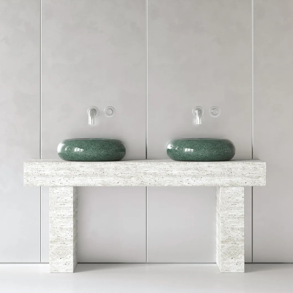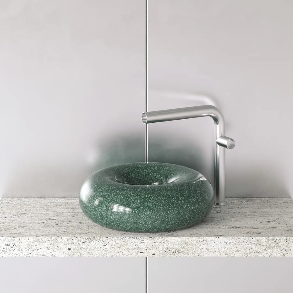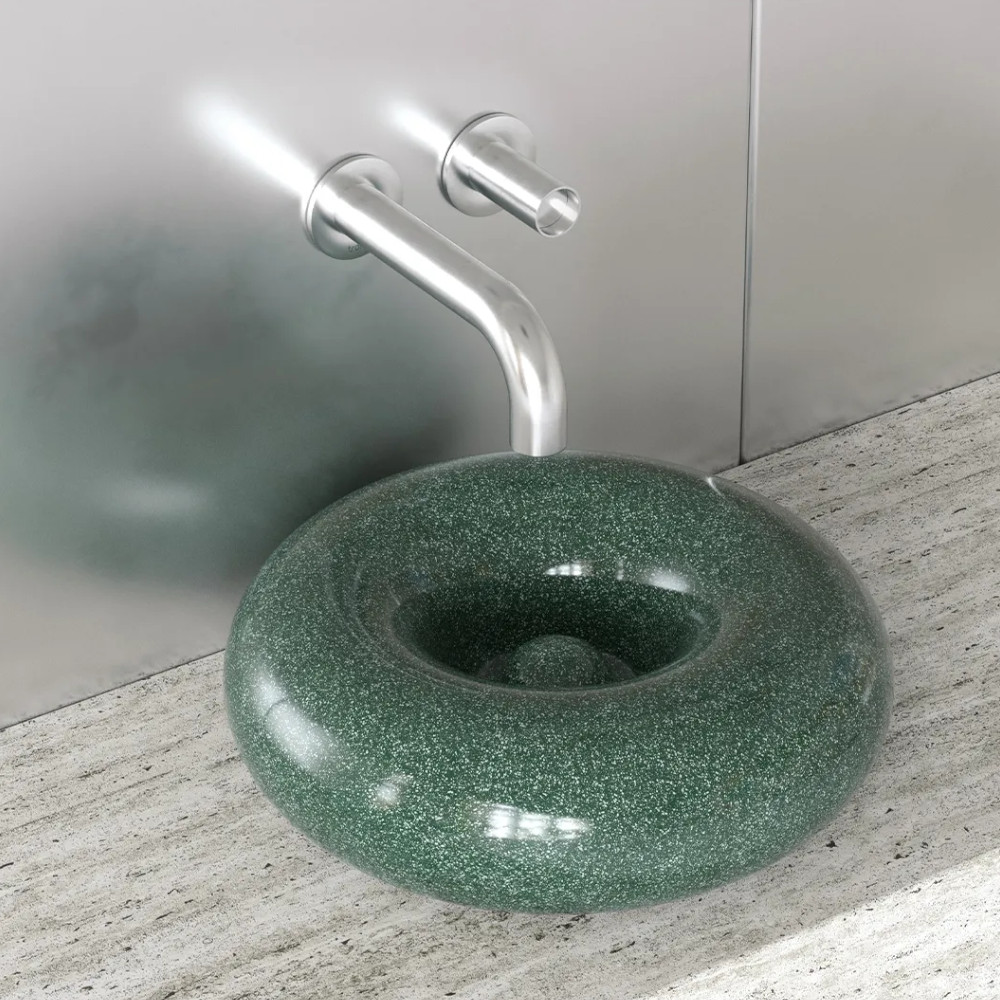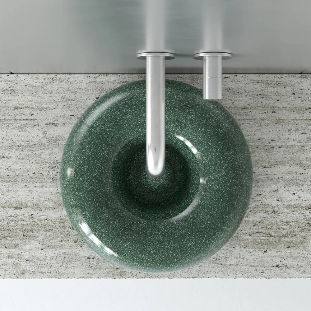 Trone Orbe Umywalka okrągła Ø 44 cm z korkiem Flaked Green ORBEFG