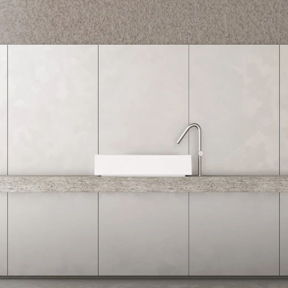 Rituel to prostokątna umywalka o równie wyrazistej, co miękkiej sylwetce – zaprojektowana, aby uatrakcyjnić codzienne rytuały.