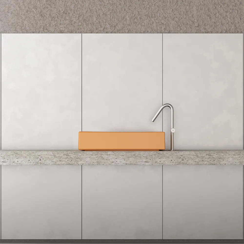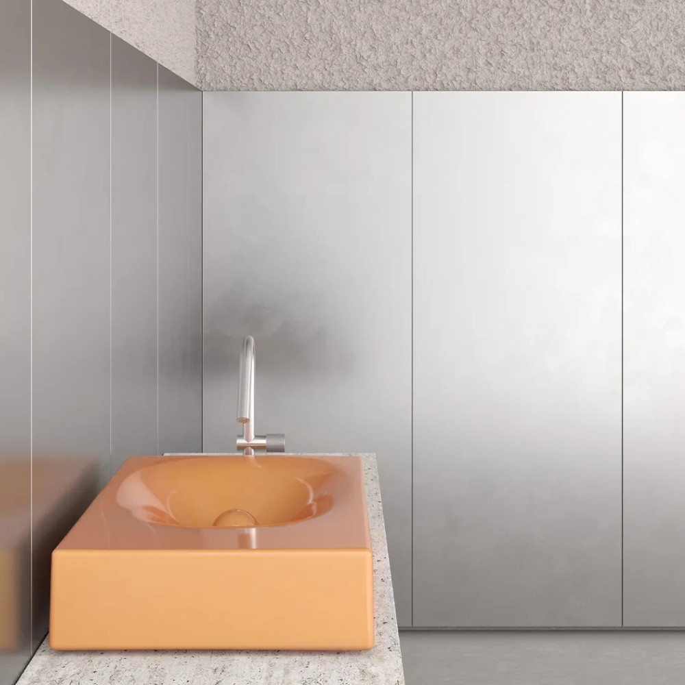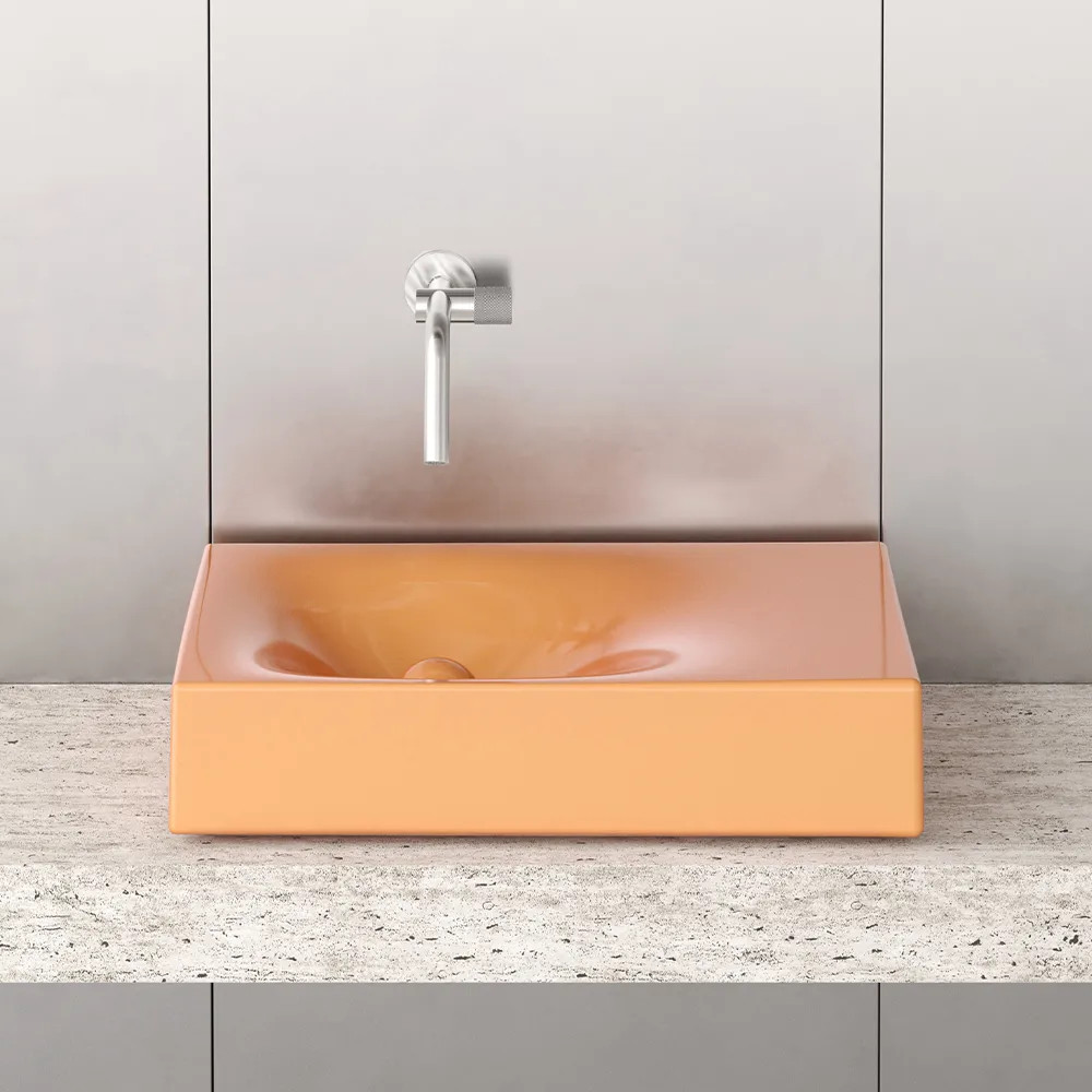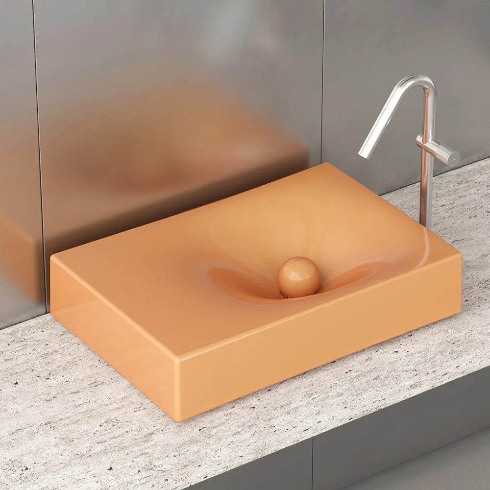 Rituel to prostokątna umywalka o równie wyrazistej, co miękkiej sylwetce – zaprojektowana, aby uatrakcyjnić codzienne rytuały.Kolor: Peach