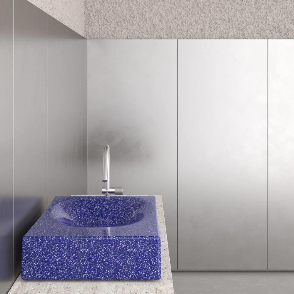 Trone Rituel Umywalka nablatowa 40,4x60,4 cm z korkiem Flaked Blue RITUELFB