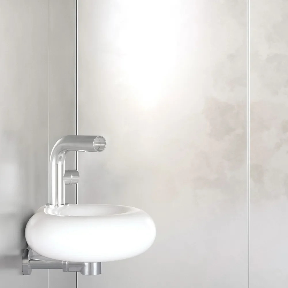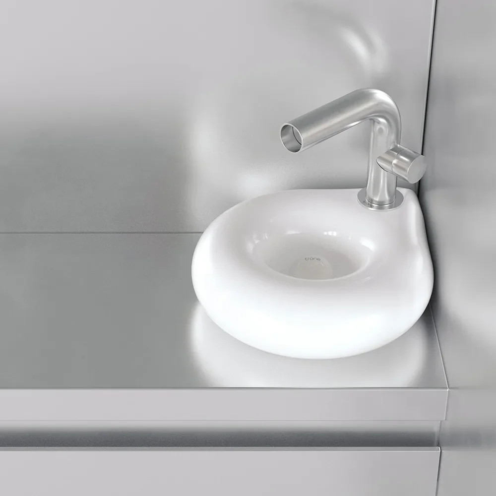 Zainspirowana delikatnym zmarszczeniem kropli wody spadającej na powierzchnię, okrągła umywalka Orbe jest zarówno rzeźbiarska, jak i funkcjonalna.