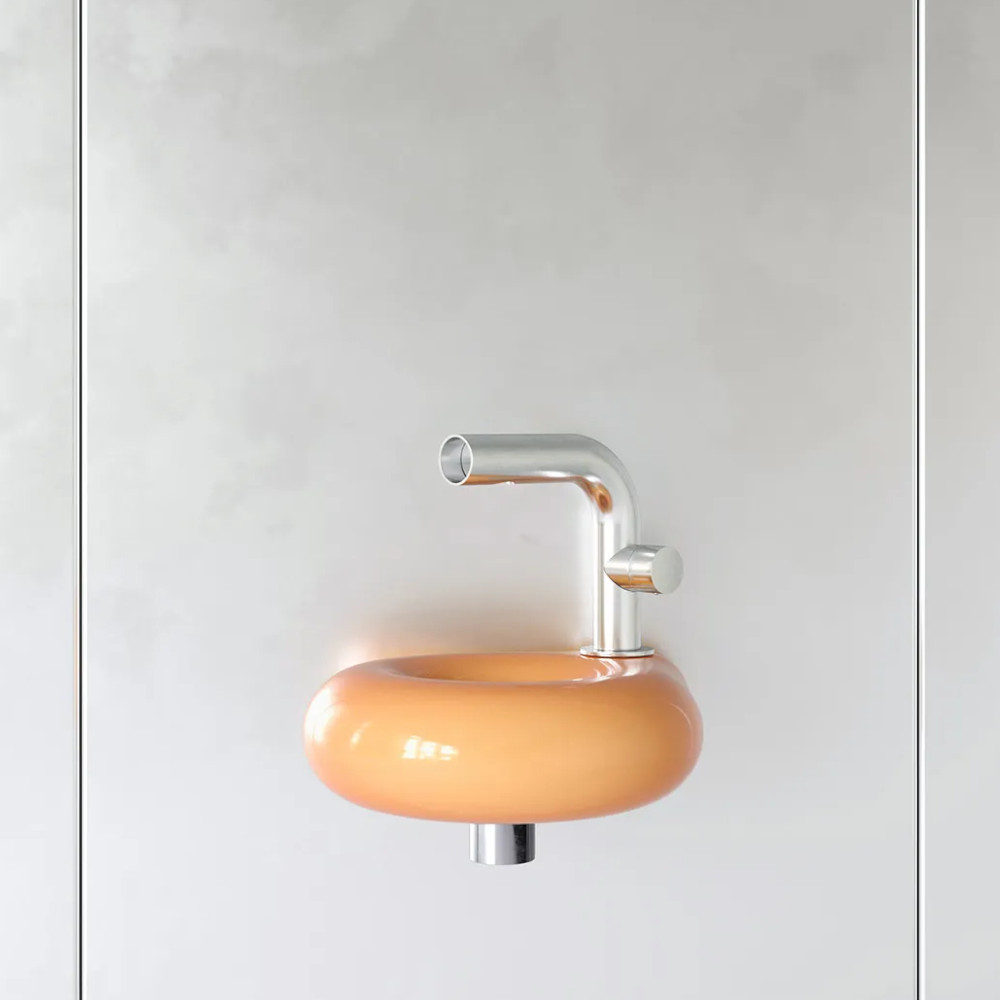 Trone Orbe Umywalka okrągła Ø 30 cm ścienna z korkiem Peach ORBEXXPE