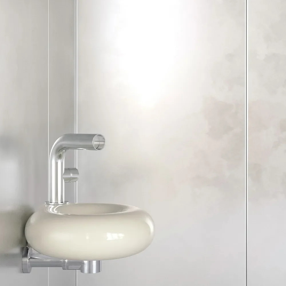 Zainspirowana delikatnym zmarszczeniem kropli wody spadającej na powierzchnię, okrągła umywalka Orbe jest zarówno rzeźbiarska, jak i funkcjonalna.Kolor: Cream