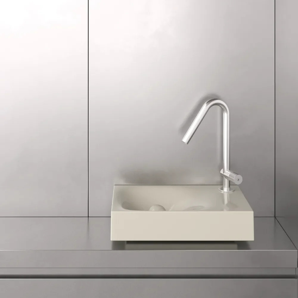 Jej asymetryczne linie i duża powierzchnia zapewniają zarówno rzeźbiarską aurę, jak i praktyczność na co dzień. Dostarczana z charakterystycznym ceramicznym zaworem spustowym.