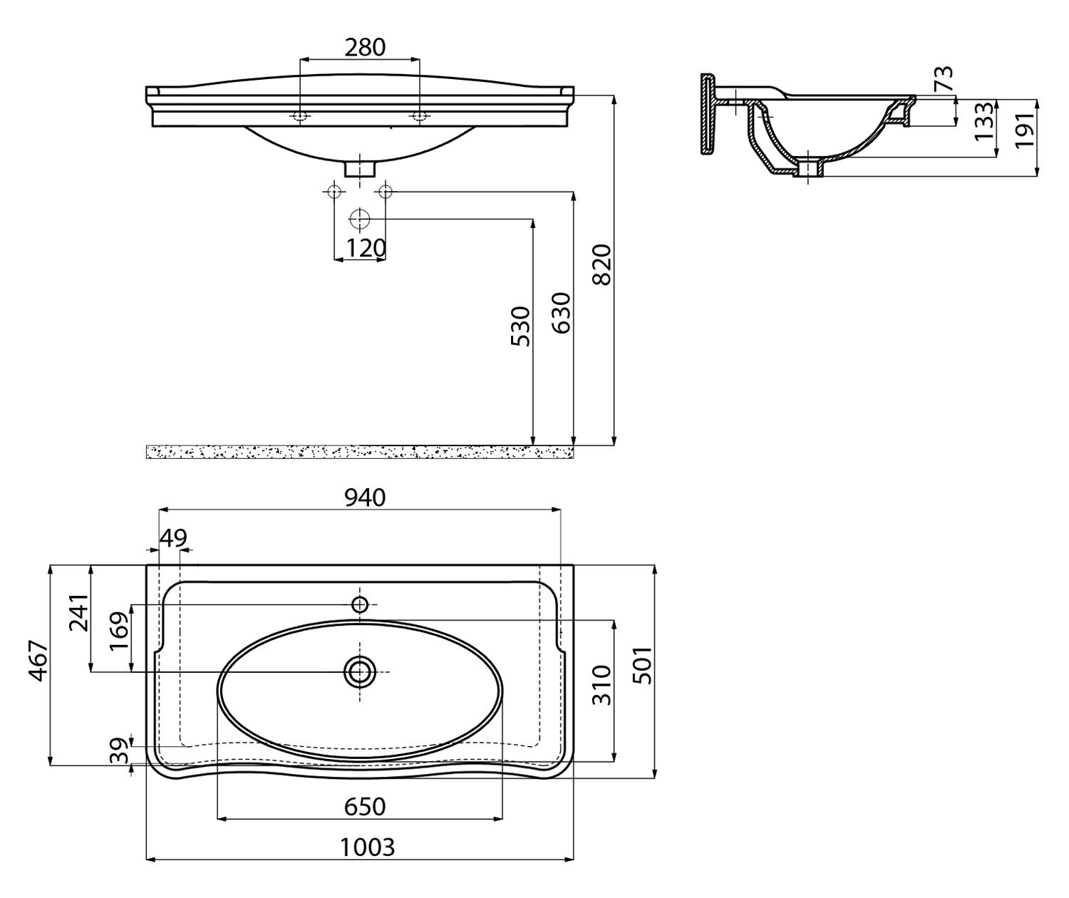 Aqualine Antik Umywalka 100x50 biały połysk AN100
