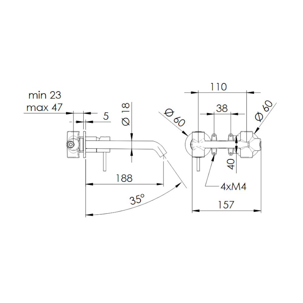 Głębokość montażu: 23 - 47 mm