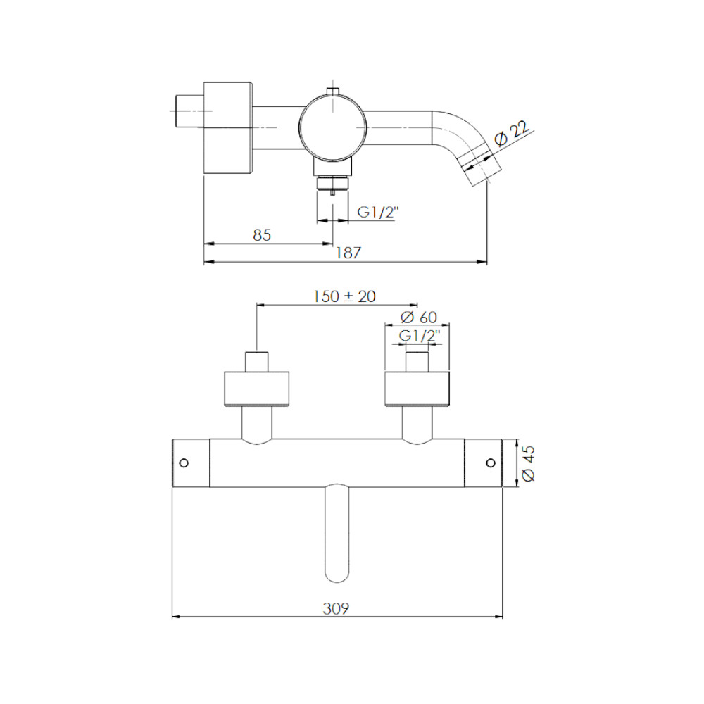 Bateria ścienna, termostatyczna