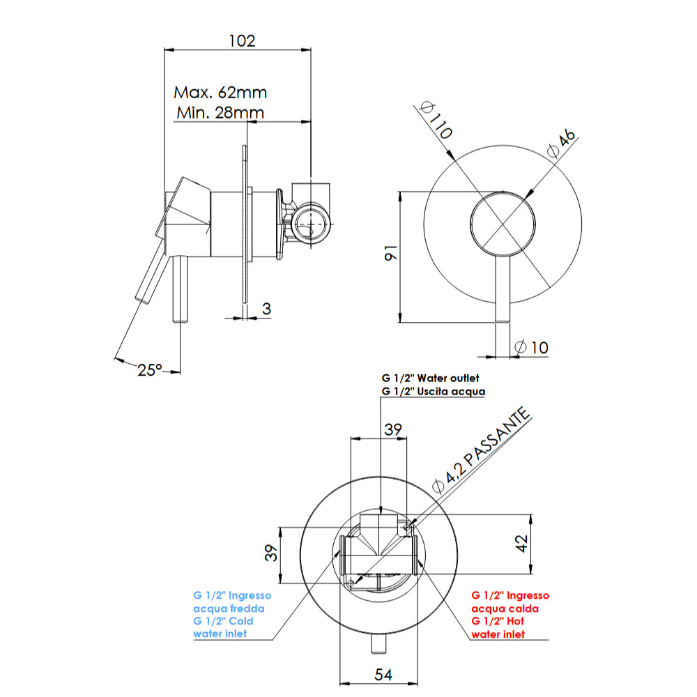 Głębokość montażu: 28 - 62 mm