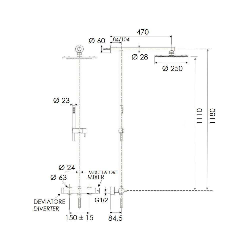 Wysokość kolumny: 1180 mm
