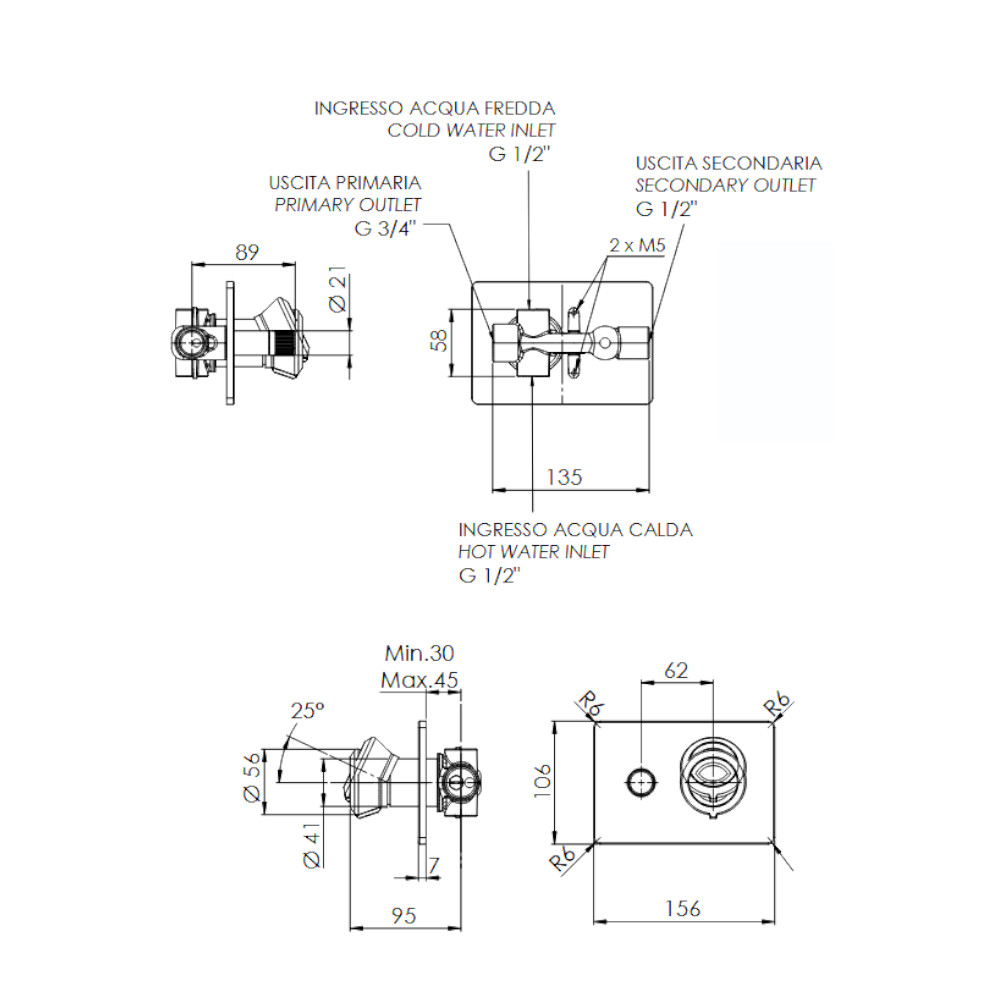 Remer Element Bateria wannowo-natryskowa podtynkowa 2-drożna - element zewnętrzny Chrom ET09HRG