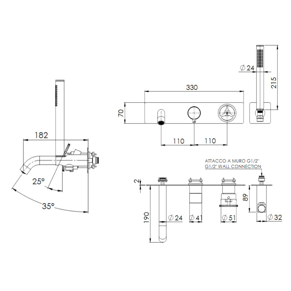 Remer Chrono Bateria wannowo-natryskowa podtynkowa z zestawem natryskowym 2-drożna - element zewnętrzny Chrom CH53D2WB