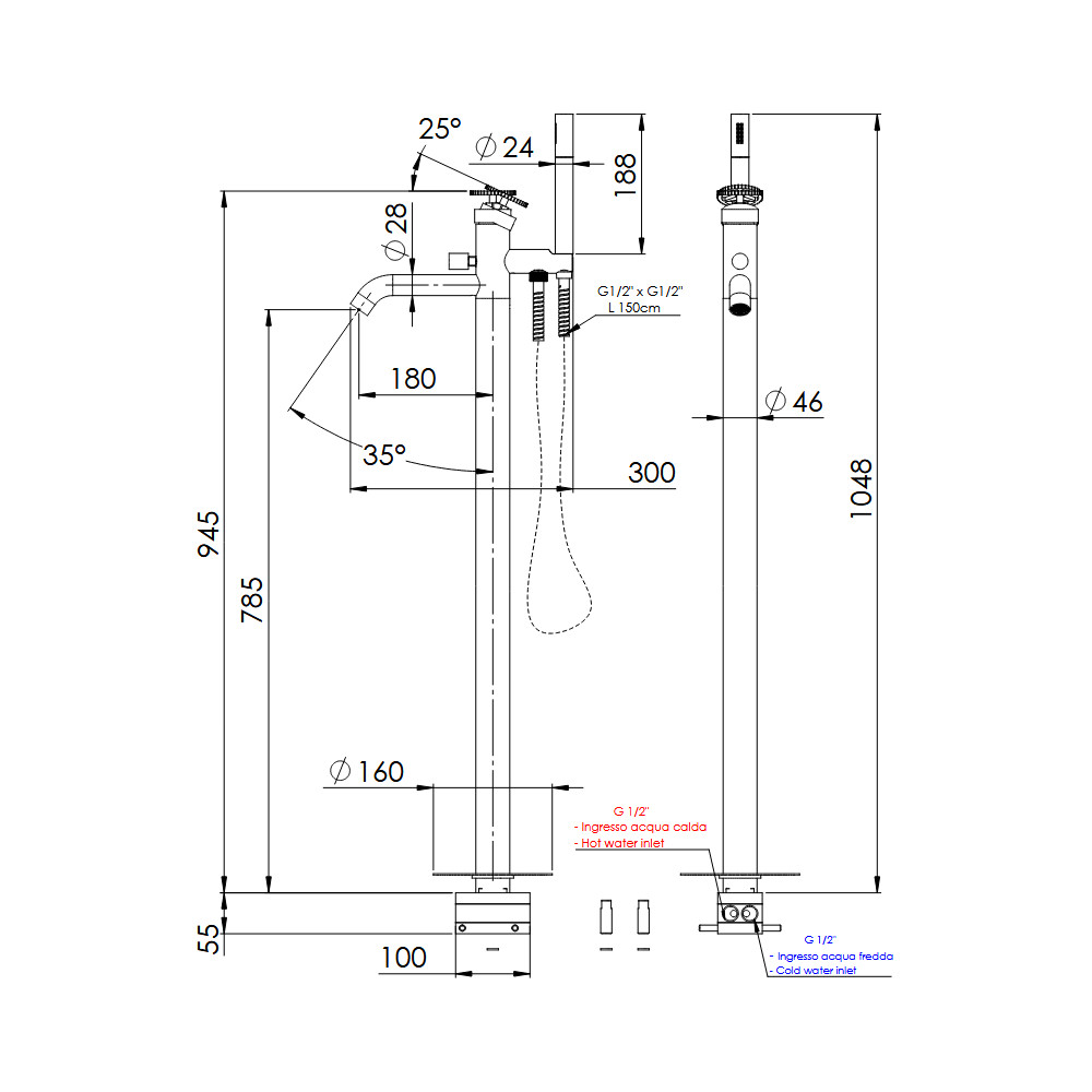 Bateria wannowa z:Kolor: Brushed Black Chrome